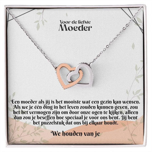 Voor de liefste Moeder | We houden van je | Hoe speciaal je voor ons bent | In Elkaar Grijpende Hart Ketting