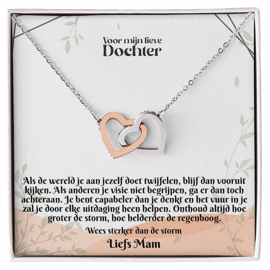 Voor mijn lieve Dochter | Liefs Mam | Wees Sterker Dan de Storm | In Elkaar Grijpende Hart Ketting