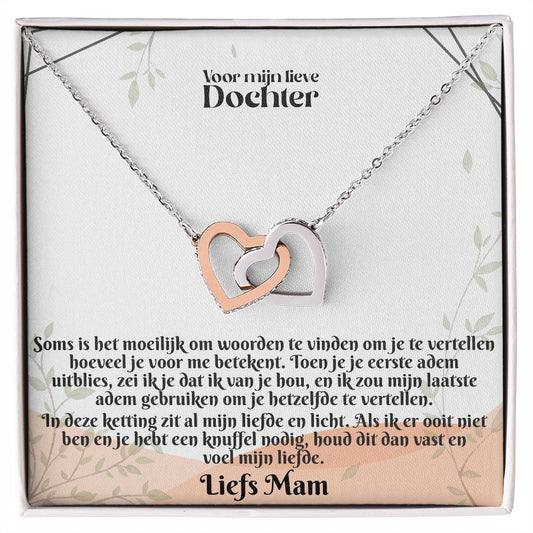 Voor mijn lieve Dochter | Liefs Mam | Voel mijn Liefde | In Elkaar Grijpende Hart Ketting