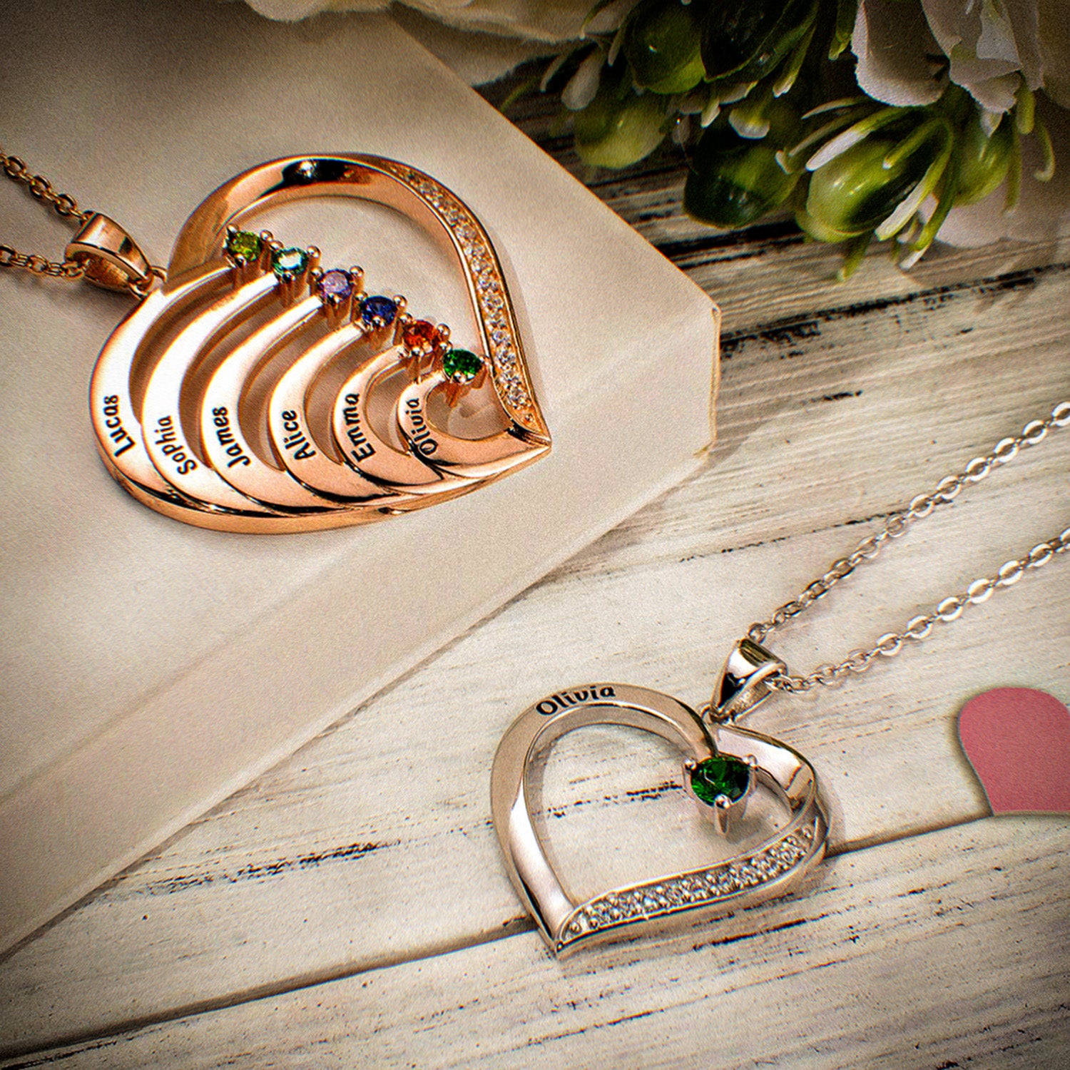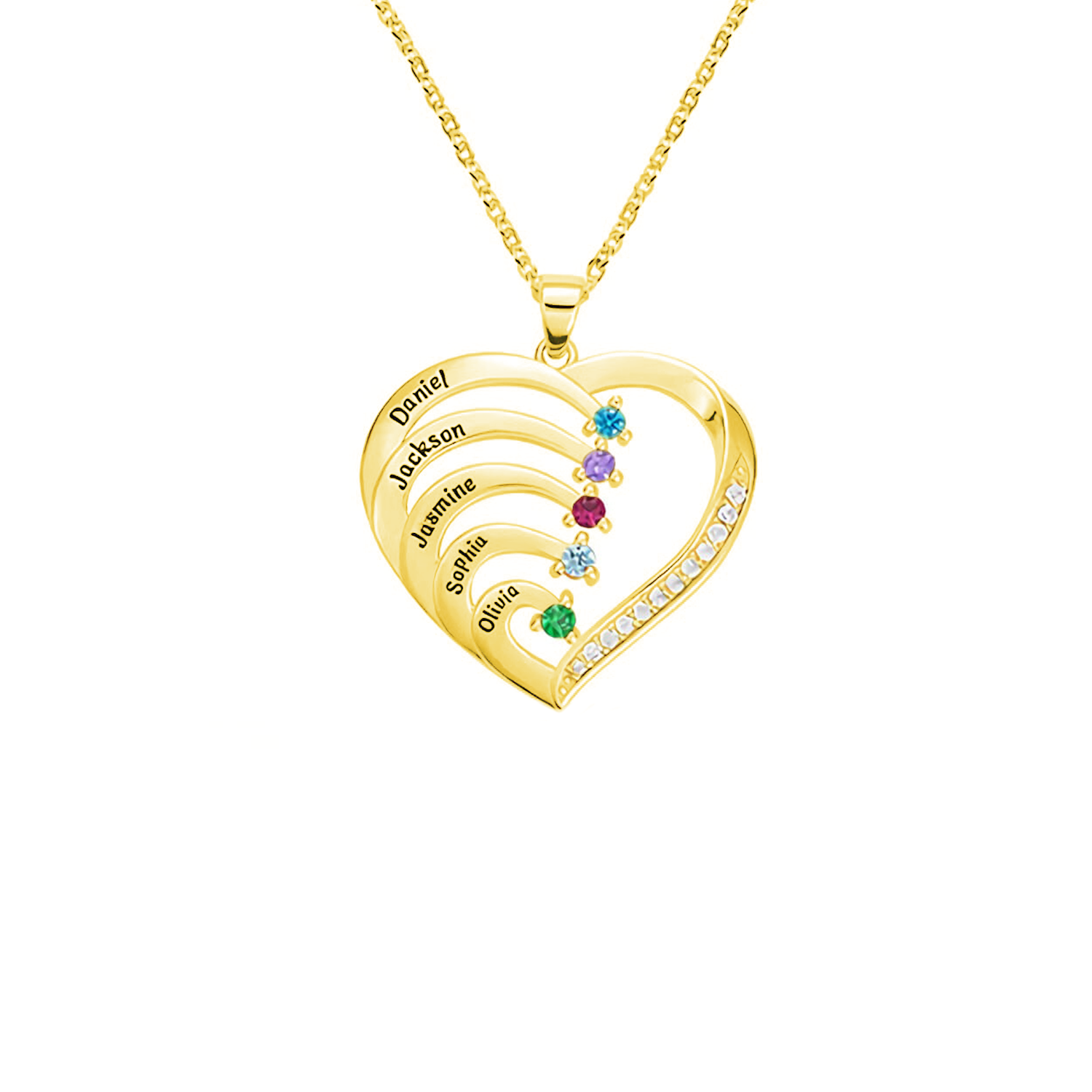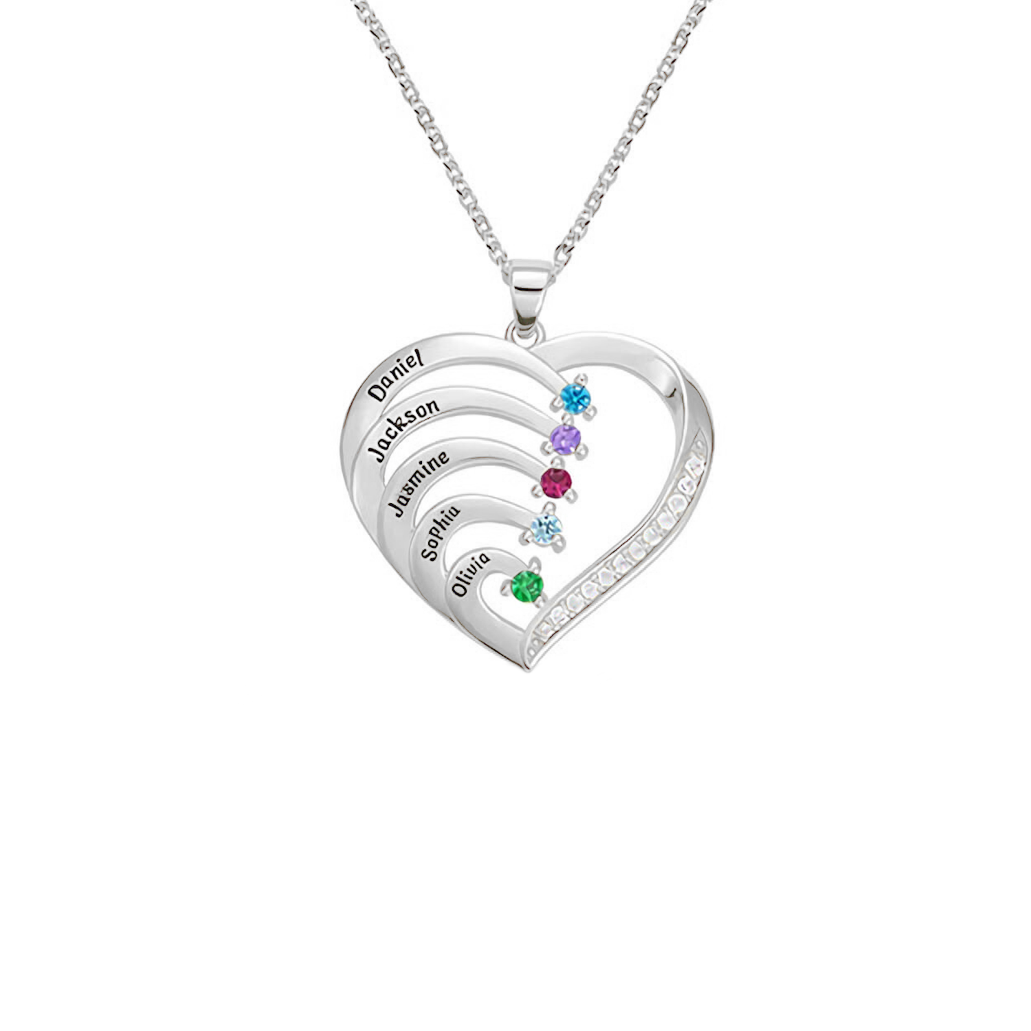 De Gepersonaliseerde Naam Hart Ketting Met Geboortesteen is een symbool van liefde en affectie, zodat je de namen van je dierbaren dicht bij je hart kunt dragen. Deze prachtige ketting heeft een hartvormige hanger die kan worden gegraveerd met maximaal 5 namen, die je dierbare familie of vrienden vertegenwoordigen. Bovendien voegt een geboortesteen naar keuze een vleugje personalisatie en betekenis toe.