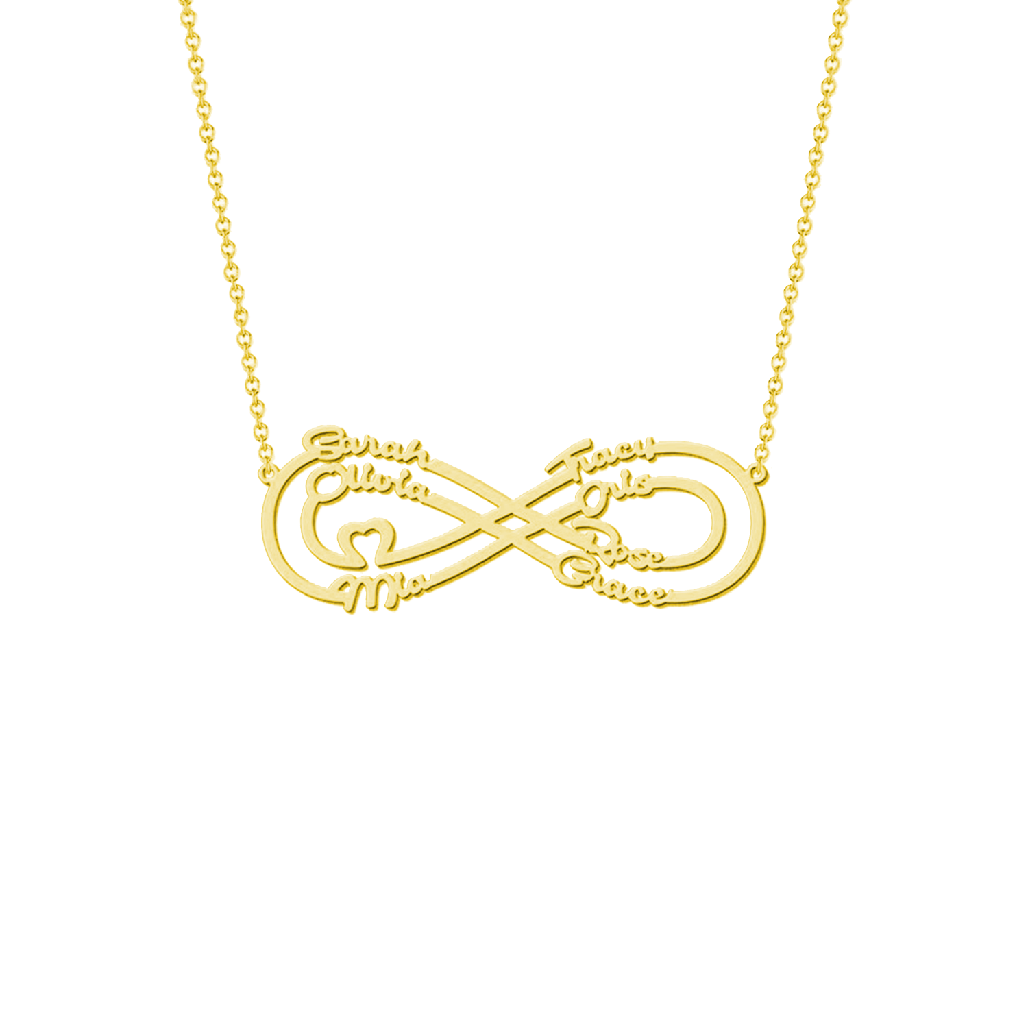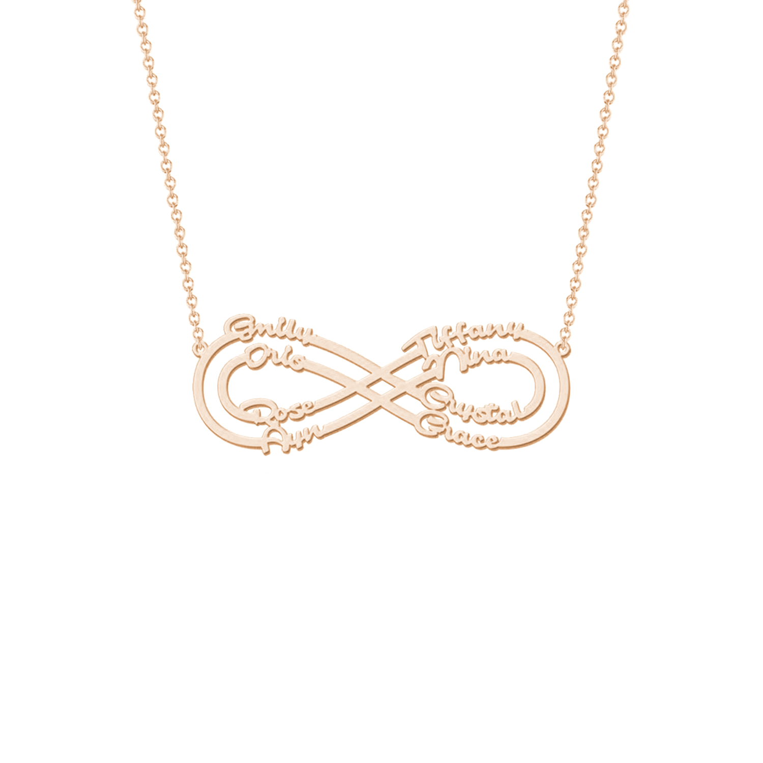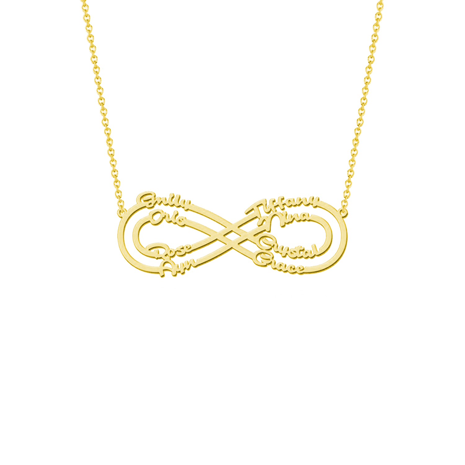 Draag de liefde van je dierbaren altijd met je mee met de Infinity Liefde Naamketting. Het voortreffelijke ontwerp kenmerkt het eeuwige oneindigheidssymbool, een krachtige weergave van grenzeloze liefde en genegenheid. Personaliseer deze ketting met maximaal 8 namen, waardoor het een echt persoonlijk en sentimenteel aandenken wordt.
