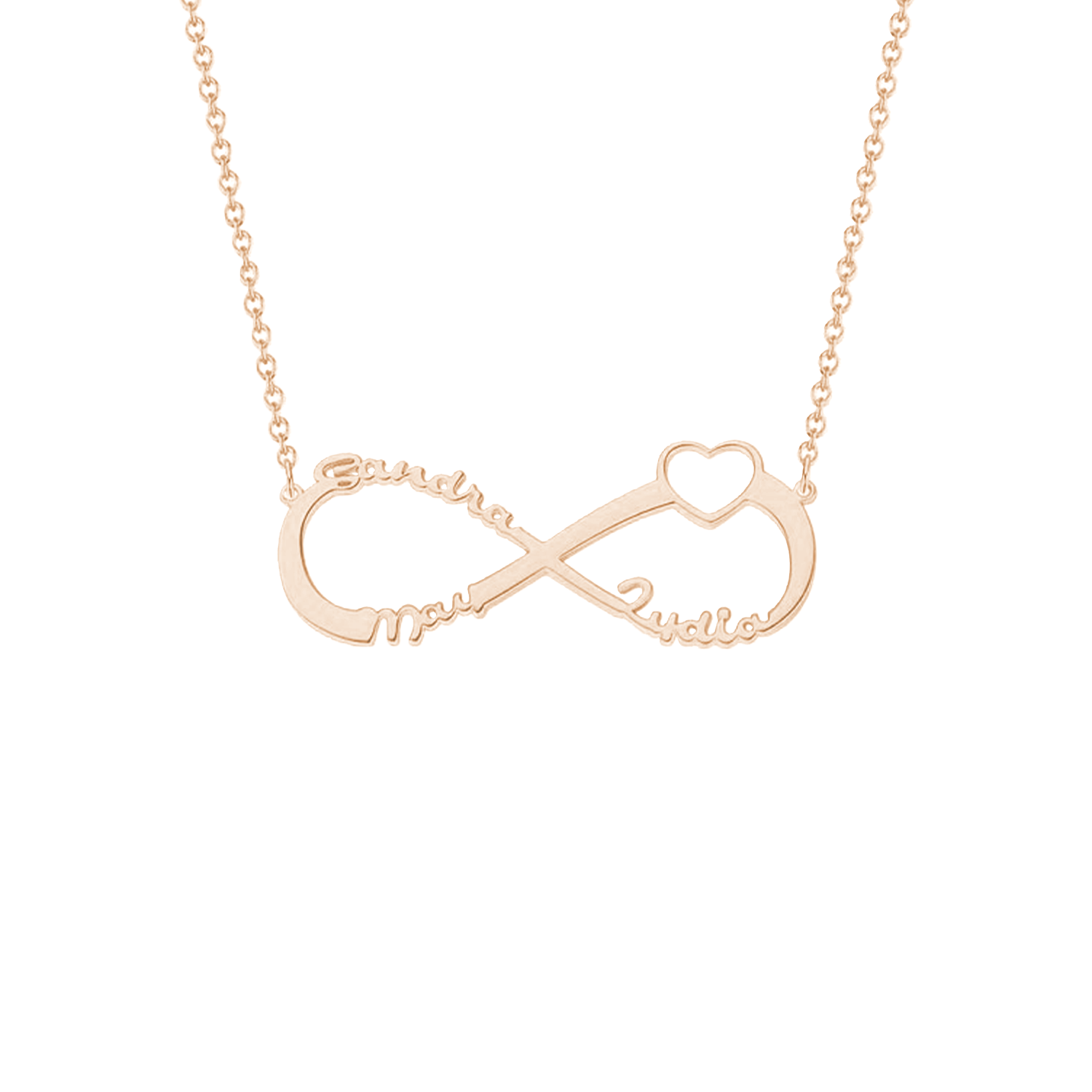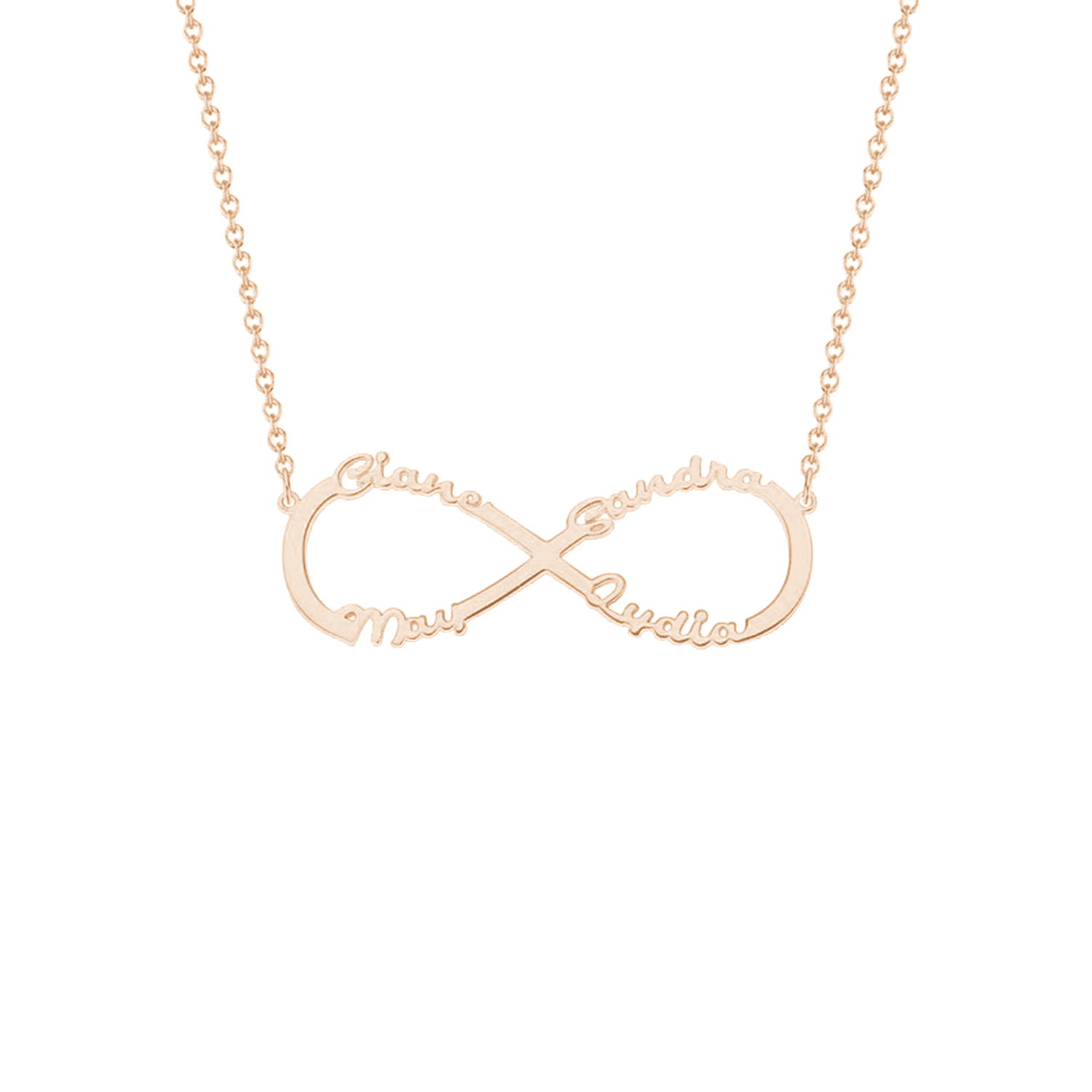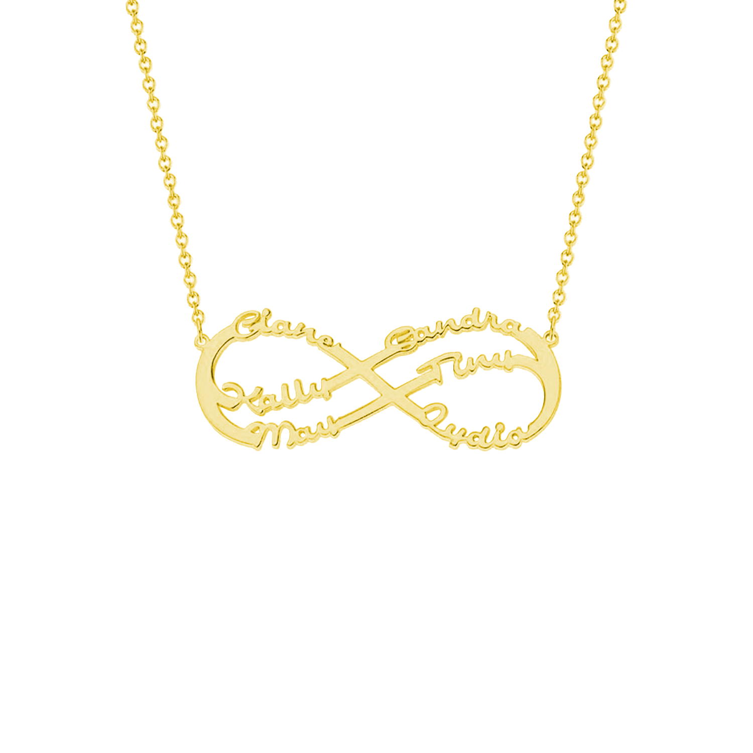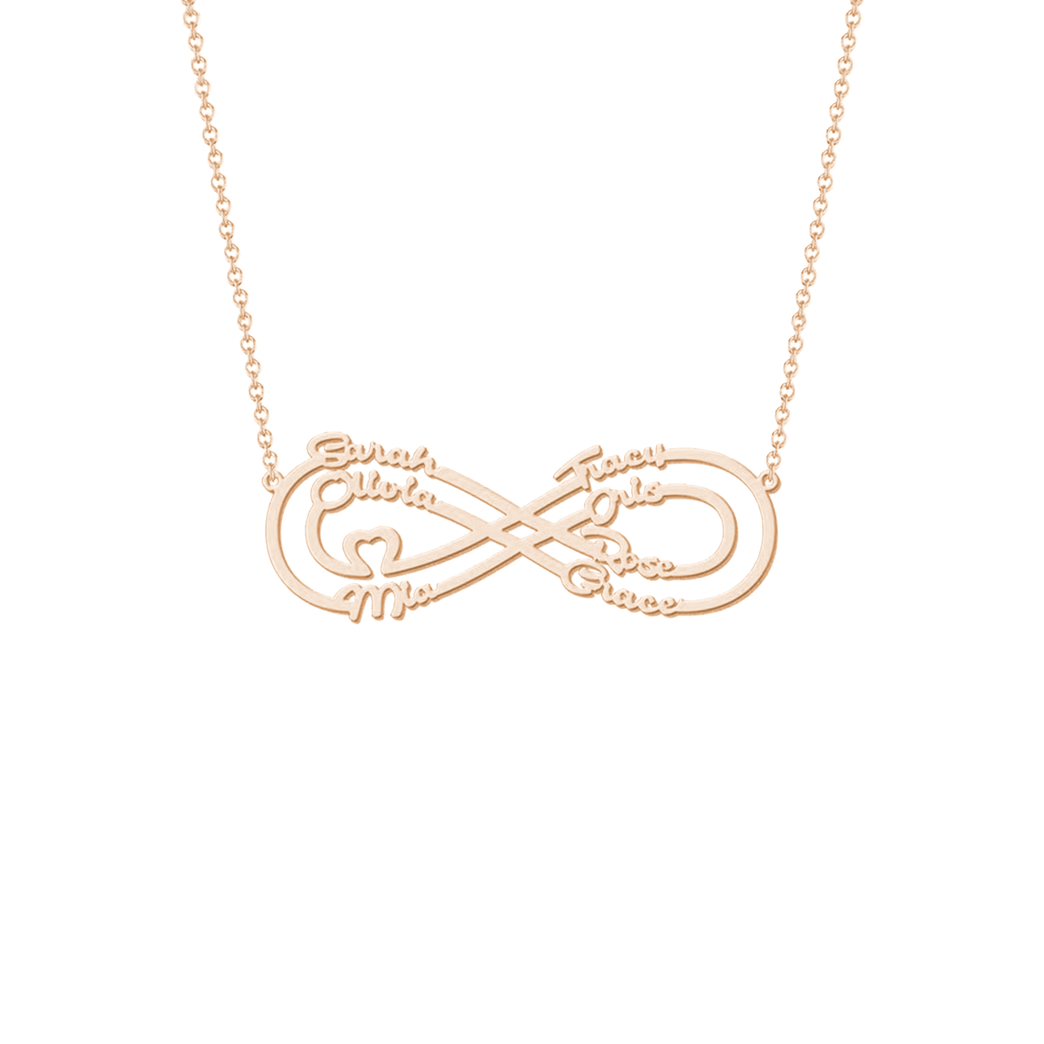 Draag de liefde van je dierbaren altijd met je mee met de Infinity Liefde Naamketting. Het voortreffelijke ontwerp kenmerkt het eeuwige oneindigheidssymbool, een krachtige weergave van grenzeloze liefde en genegenheid. Personaliseer deze ketting met maximaal 8 namen, waardoor het een echt persoonlijk en sentimenteel aandenken wordt.