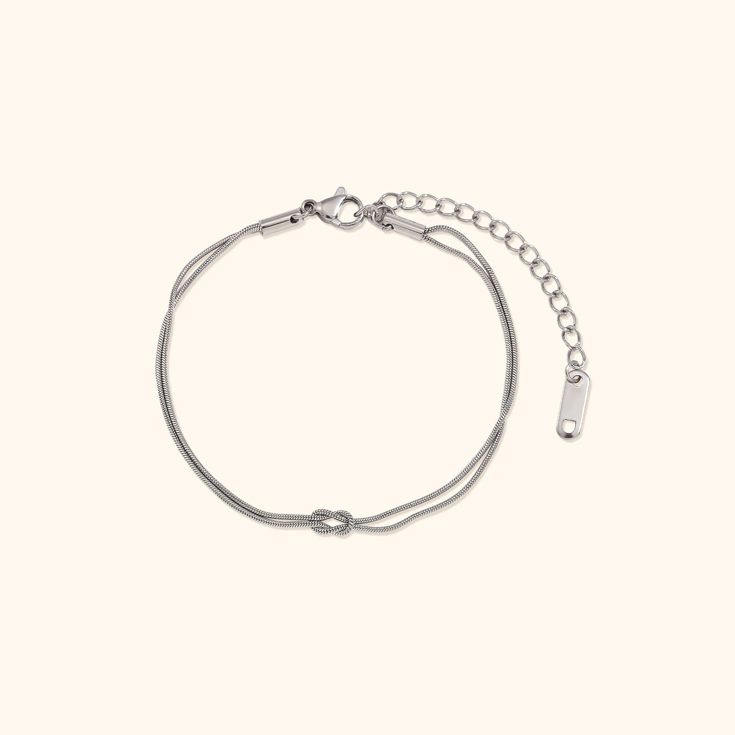 De Verbonden Knoop Koppel Armband van Eefje Elise is een perfect symbool van liefde en verbondenheid. Met zorg met de hand gemaakt, vertegenwoordigt het delicate knoopontwerp de band tussen twee mensen, terwijl de slangenketting een strakke, moderne uitstraling toevoegt. Comfortabel, duurzaam en elegant, kan deze dagelijks worden gedragen als herinnering aan jullie liefde, waardoor het een betekenisvol cadeau is voor Valentijnsdag, jubilea of andere speciale gelegenheden.